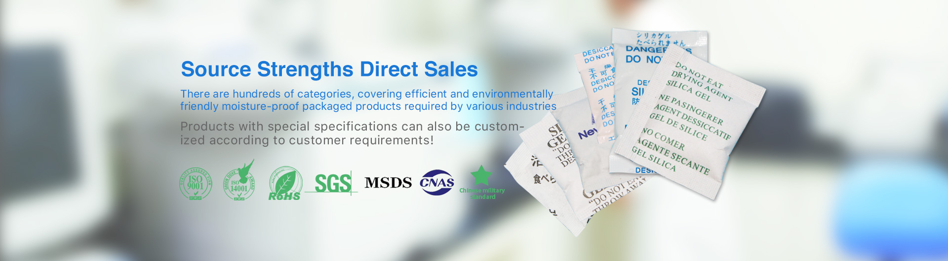 Moisture-proof and mildew-proof products produced by the company through the introduced foreign technologies include: silica desiccant, green environmentally friendly desiccant, active desiccant, mineral desiccant, mineral desiccant, calcium chloride desiccant, montmorillonite desiccant, container desiccant, lime desiccant, deoxidizer, mildewproof chips, et; there are composite paper, non-woven fabric, OPP transparent paper, Tyvek paper, Aihua paper, strong mesh paper and others for users to choose. The company can develop and produce products with special specifications according to customers’ needs. In addition, the company provides cable ties, nylon cable ties, iron cable ties, food ties, snap fasteners and plastic pins.